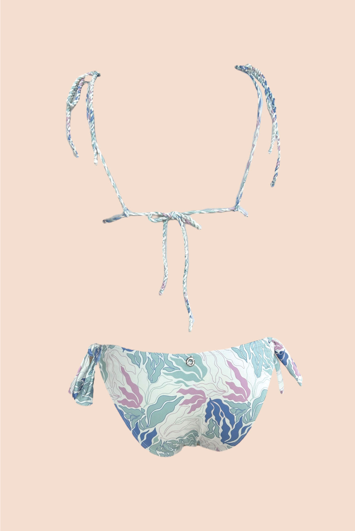 El Aurora Top Triángulo combina comodidad y estilo con un diseño artesanal único. Esta diseñado con un estampado con formas que evocan hojas marinas o corales suaves, y una paleta que mezcla lavanda, azul sereno, verde menta y toques blancos, transmitiendo frescura y calma. Confeccionado a mano con tela Eco Friendly de 82% poliéster reciclado y 18% lycra, este top presenta tirantes trenzados ajustables para un ajuste perfecto en hombros y espalda. Equipado con copas suaves removibles y un accesorio exclusivo de dije en níquel con forma de salvavidas, este top es ideal para lucir con confianza. Ofrece protección solar, resistencia al cloro y secado rápido.
