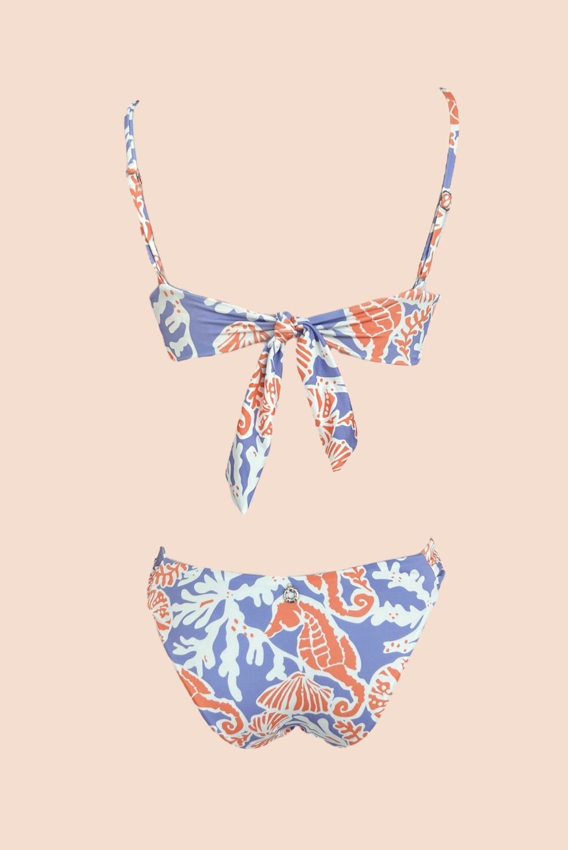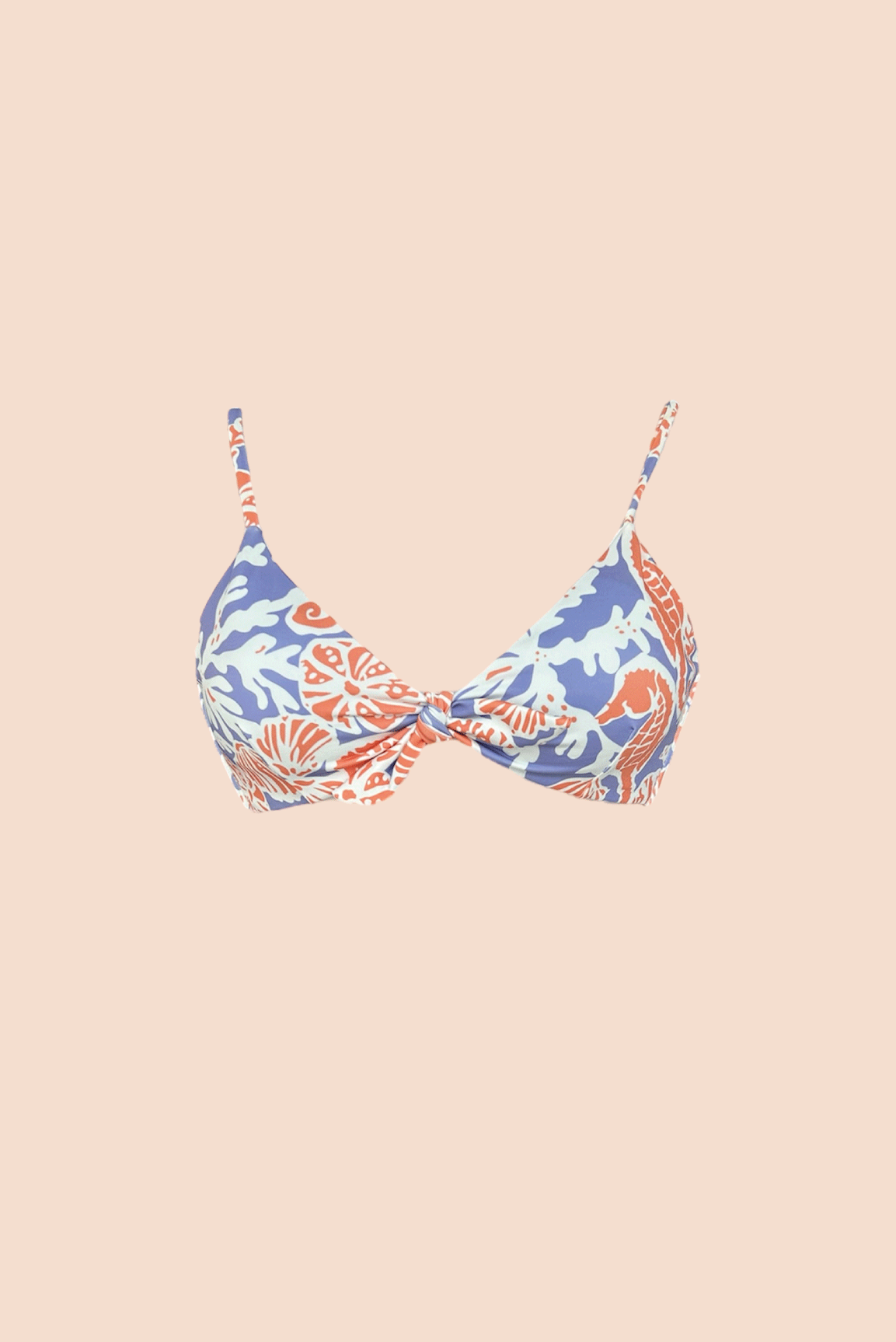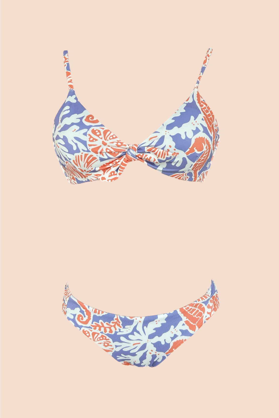El Boom Top Lazo Frontal es un top de bikini de triángulo confeccionado a mano, con un encantador lazo en la parte frontal y tirantes ajustables que garantizan un ajuste cómodo y seguro. Incluye copas suaves removibles y un elegante accesorio de dije de salvavidas en níquel. Fabricado con materiales eco-friendly, su composición de 82% poliéster reciclado y 18% lycra ofrece protección solar, resistencia al cloro y secado rápido. Ideal para días soleados, este top es color, ritmo y energía marina. Inspirado en la vida del océano, mezcla tonos coral y azul lavanda en un diseño lleno de movimiento. Un print alegre y moderno que celebra la libertad del verano con un estilo audaz y vibrante.