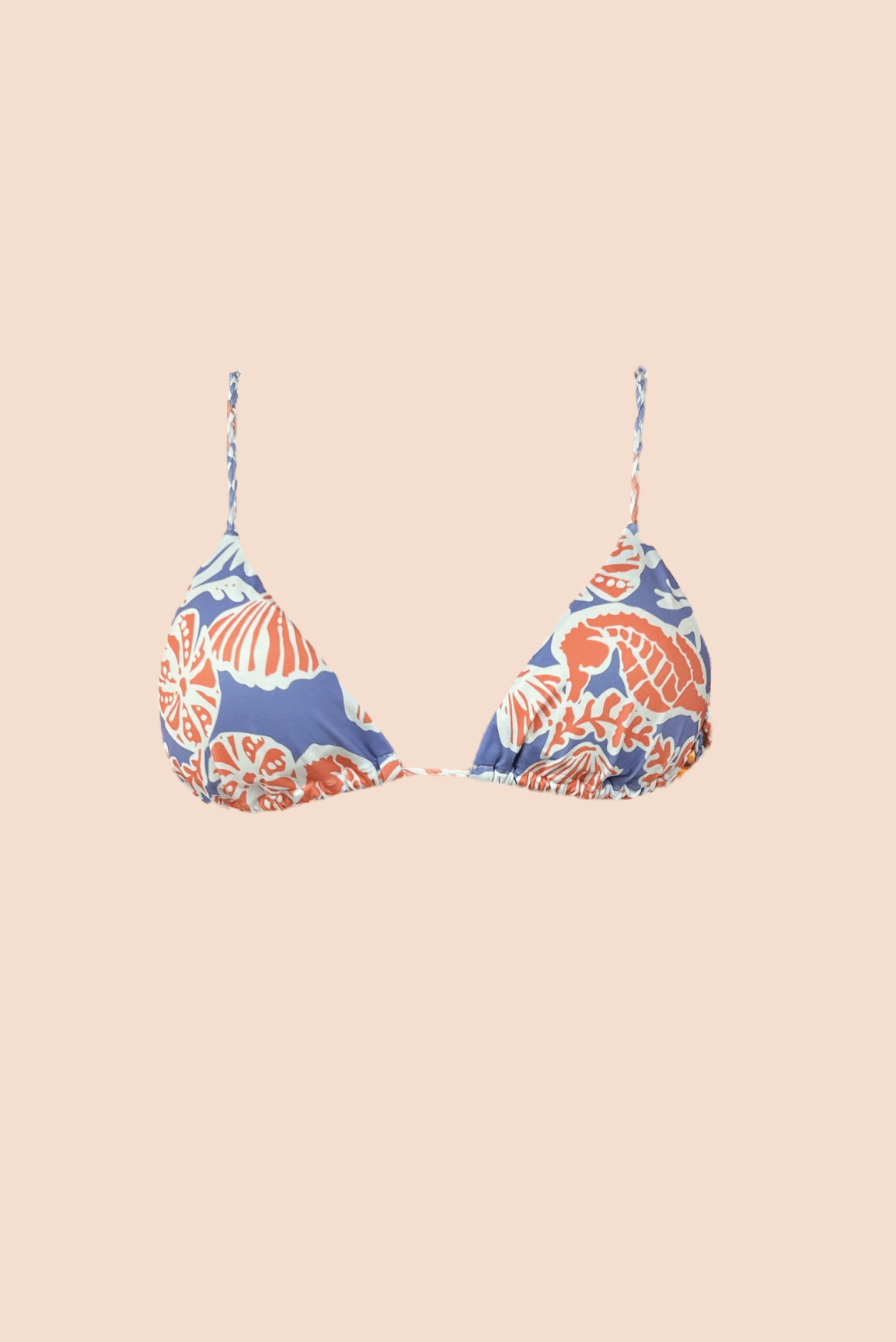 El Boom Top Triángulo combina comodidad y estilo con un diseño artesanal único. Este top es color, ritmo y energía marina. Inspirado en la vida del océano, mezcla tonos coral y azul lavanda en un diseño lleno de movimiento. Un print alegre y moderno que celebra la libertad del verano con un estilo audaz y vibrante. Confeccionado a mano con tela Eco Friendly de 82% poliéster reciclado y 18% lycra, este top presenta tirantes trenzados ajustables para un ajuste perfecto en hombros y espalda. Equipado con copas suaves removibles y un accesorio exclusivo de dije en níquel con forma de salvavidas, este top es ideal para lucir con confianza. Ofrece protección solar, resistencia al cloro y secado rápido.