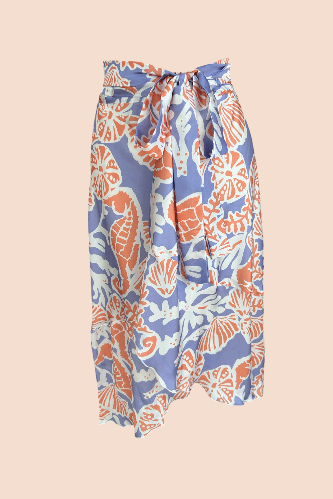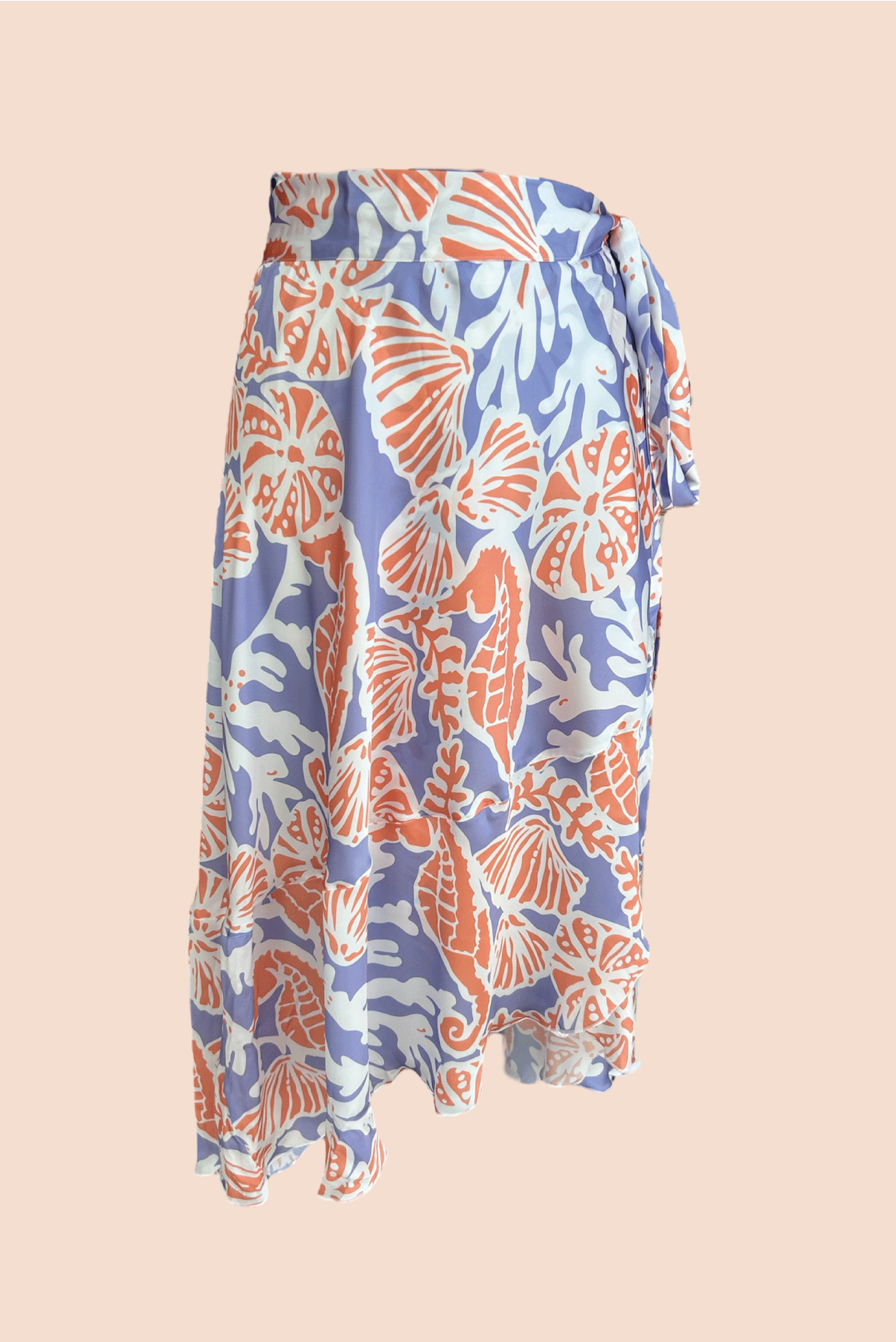 La Falda Boom es una prenda única y sofisticada, es color, ritmo y energía marina. Inspirado en la vida del océano, mezcla tonos coral y azul lavanda en un diseño lleno de movimiento. Un print alegre y moderno que celebra la libertad del verano con un estilo audaz y vibrante. Su diseño de talle alto y amarre ajustable en la cintura, hace que esta falda larga sea ideal para complementar vestidos de baño o para prenda casual para días relajados. Fabricada en 100% poliéster con fibra satinada, su textura sedosa y ligera asegura estilo y comodidad. Sus medidas de 94 cm de ancho y 85 cm de largo la convierten en una opción versátil y elegante.