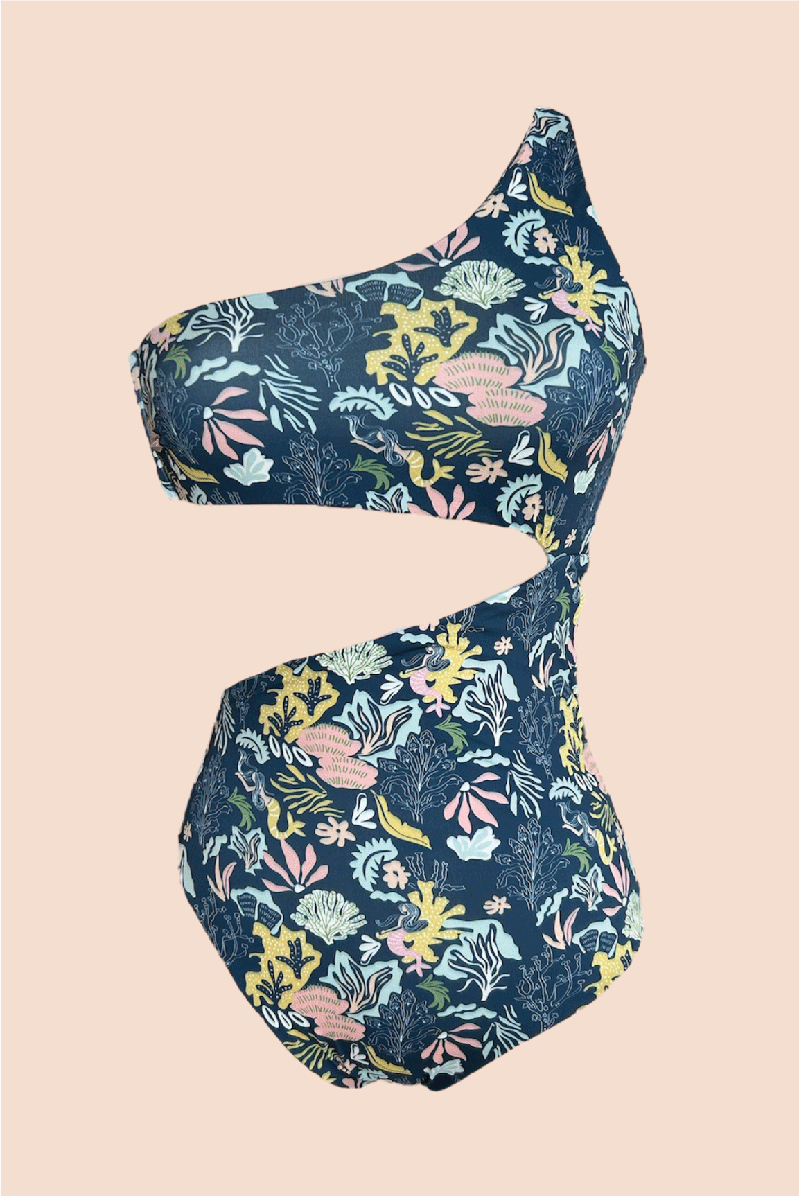 El Habitat One Piece Escote Asimétrico es un enterizo confeccionado a mano que combina diseño moderno y funcionalidad. Su estampado marino pastel sobre un elegante fondo azul oscuro, le da un estilo fresco y moderno, este traje de baño presenta un escote asimétrico y una apertura lateral que resaltan la silueta. Ofrece control de abdomen y copas suaves removibles para mayor soporte y comodidad. Fabricado con 80% poliéster y 20% lycra, garantiza protección solar, resistencia del color y secado rápido. Un exclusivo dije de salvavidas en níquel añade un toque distintivo.