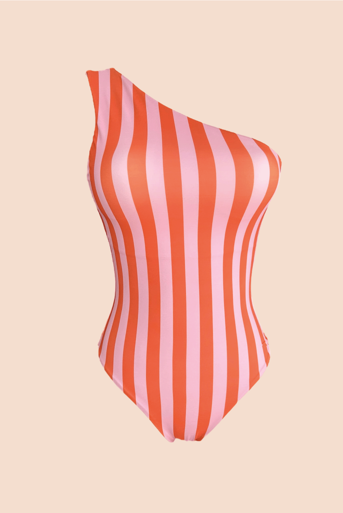 El Pop One Piece Escote Asimétrico es un enterizo confeccionado a mano que destaca por su diseño moderno y funcional. Presenta un estampado vibrante de franjas rosa y naranja, evocan el espíritu alegre del verano con un toque retro y lleno de energía. Un print vibrante y moderno que ilumina cada look con color y actitud. y su escote asimétrico añade un toque único y sofisticado. Este traje de baño incluye copas suaves removibles para garantizar comodidad y soporte. Confeccionado a mano con tela Eco Friendly de 82% poliéster reciclado y 18% lycra, ofrece protección solar, resistencia al cloro y secado rápido. Su exclusivo dije de salvavidas en níquel complementa el diseño.