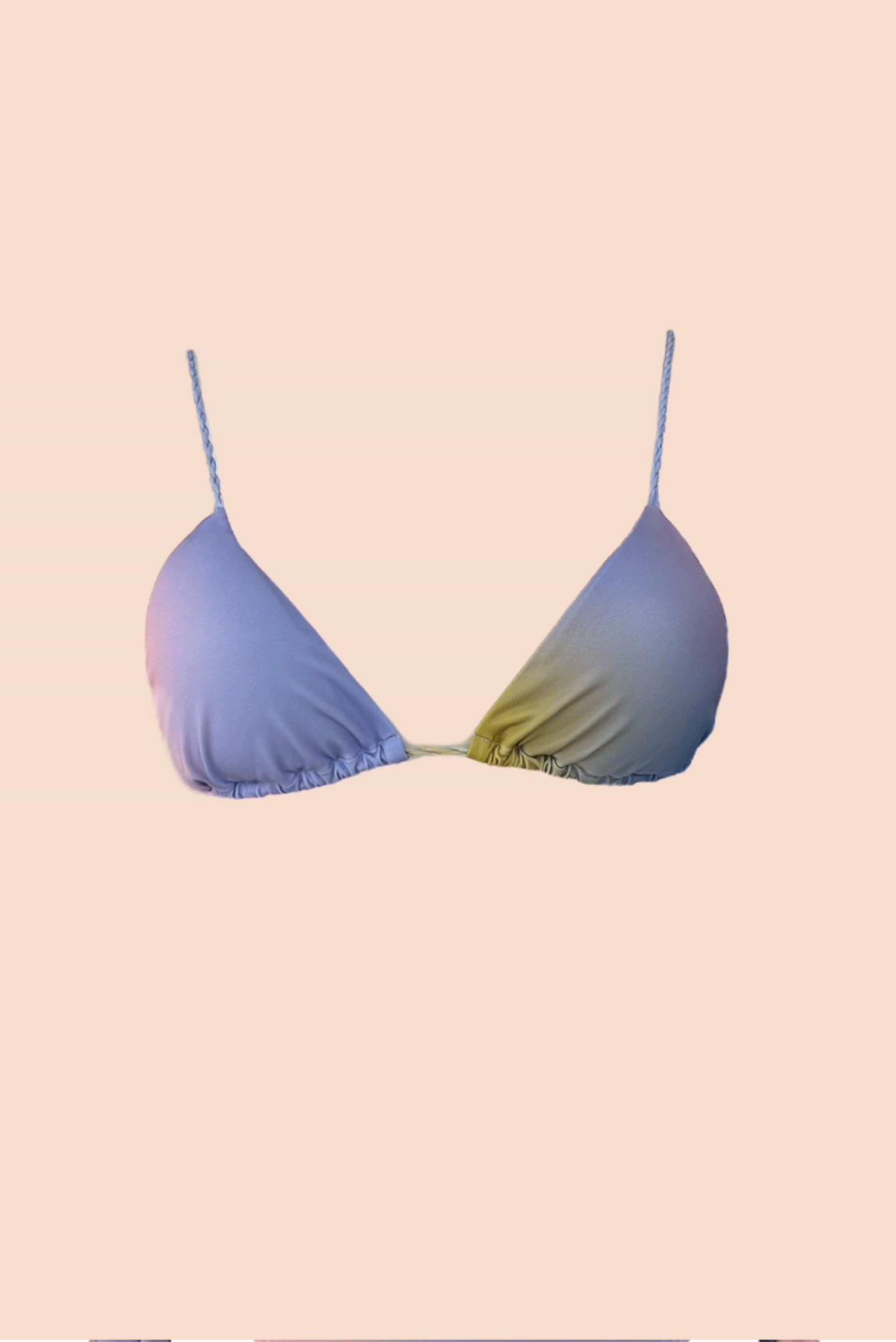 El Sunset Top Triángulo combina comodidad y estilo con un diseño artesanal único. presenta un estampado degradado suave que combina los tonos del atardecer junto al mar. Confeccionado a mano con tela Eco Friendly de 81% poliéster reciclado y 19% lycra, este top presenta tirantes trenzados ajustables para un ajuste perfecto en hombros y espalda. Equipado con copas suaves removibles y un accesorio exclusivo de dije en níquel con forma de salvavidas, este top es ideal para lucir con confianza. Ofrece protección solar, resistencia al cloro y secado rápido.