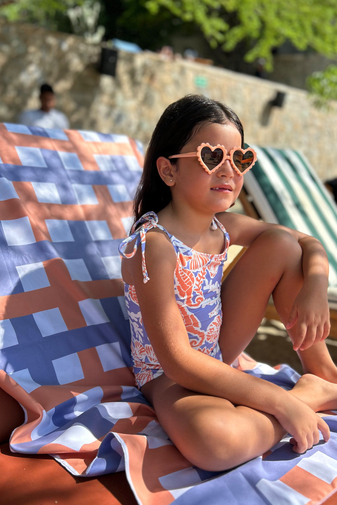 La Toalla Boom Rectangular tiene un llamativo estampado inspirado en la vida del océano, mezcla tonos coral y azul lavanda en un diseño lleno de movimiento. Un print alegre y moderno que celebra la libertad del verano con un estilo audaz y vibrante, el reverso luce un diseño de cuadros suaves que equilibra frescura y modernidad. Cuenta con una tela de microfibra de tacto suave, estampada por ambos lados, liviana y de secado rápido.